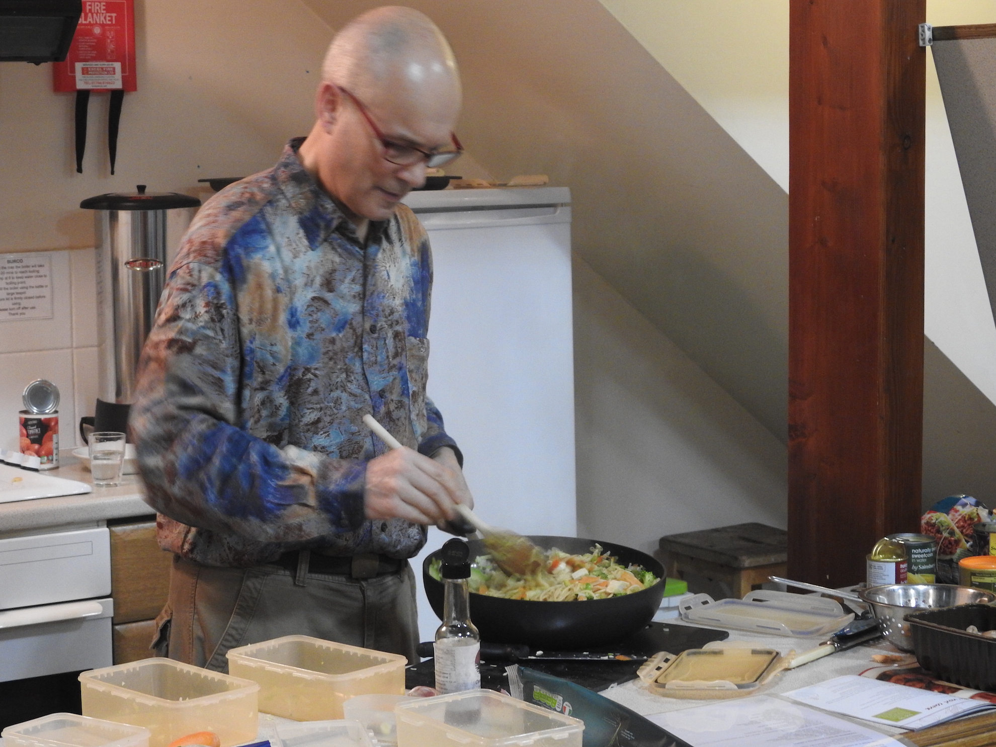 Brown rice, quinoa, buckwheat, millet or noodles (beware of egg noodles). In the demonstration, my noodles will be 200 g of spaghetti (50g per person) broken into 75mm (3 inch) lengths, pre-cooked and added to the stir-fry as noodles.