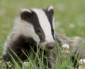 Stock Photography 1 April 2014 280 × 226 Stock Photography Eurasian Badger (Meles meles) cub, standing amongst flowering clover in meadow, Blithfield, Staffordshire, England, June Keywords: stock, badger, wildlife Confirmed wild by Alamy on 2/11/14