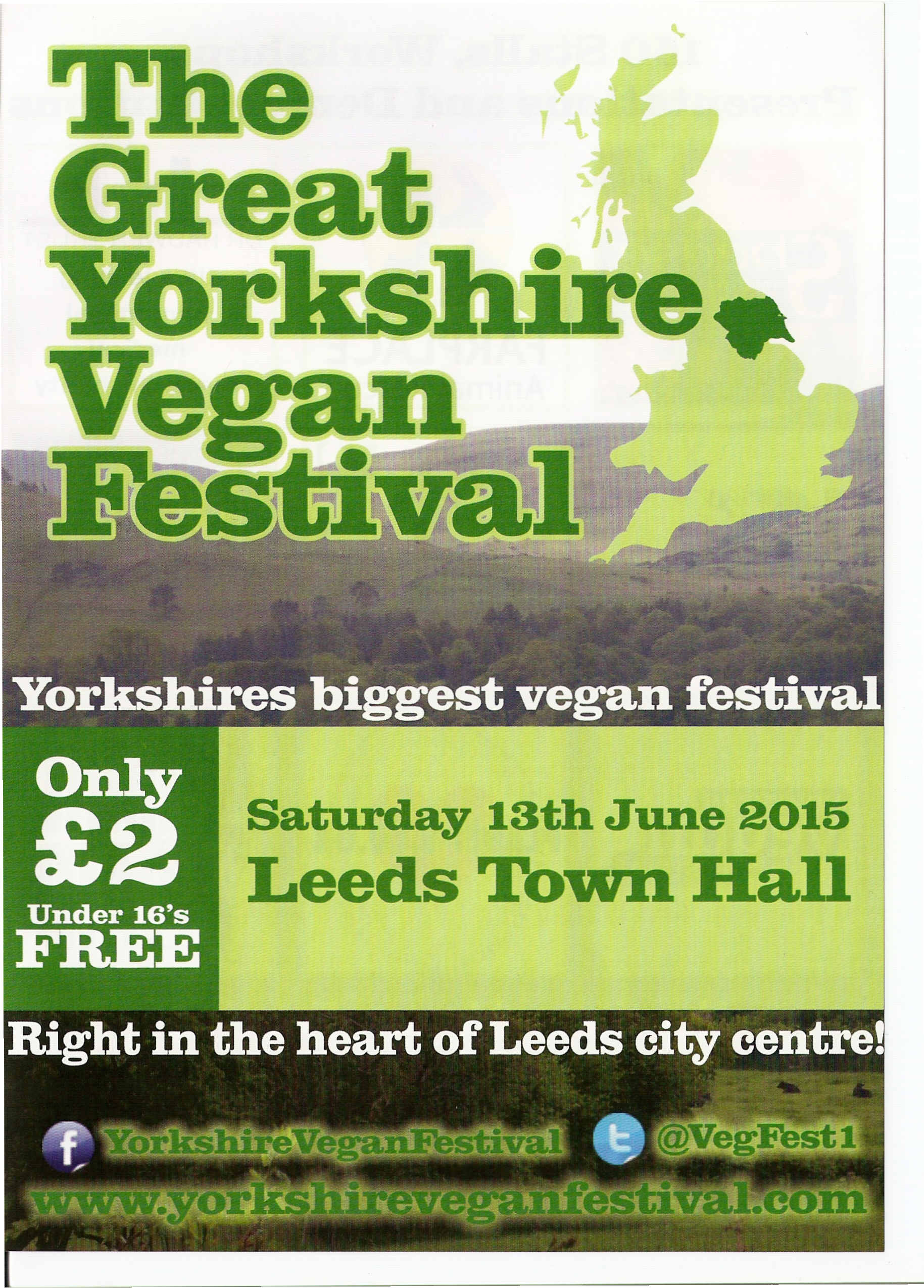 Following the huge success of the first Great Yorkshire Vegan Festival in May 2014 in Leeds that attracted thousands of people from all over the UK and beyond, we will be returning to Leeds for the second annual Great Yorkshire Vegan Festival on 13th June 2015 in Leeds Town Hall. The Great Yorkshire Vegan Festival, WinterFest and the Northern Vegan Festival are all run entirely by volunteers to support various animal welfare charities.
