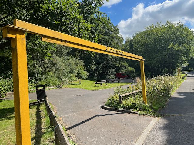 The main part of the walk will start no later than 10:40 but see below for the earlier start in Todmorden town centre. Please gather at the picnic area/free car park on the left just after the 40 MPH signs on the Halifax Road to Hebden Bridge from Todmorden. From Hebden Bridge towards Todmorden, the picnic area/ car park is on the right just before the 30 MPH road signs. See the photo showing yellow low-headroom (2.1m) entrance/exit ‘barriers’.